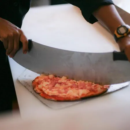 宿泊から徒歩で5分くらい離れたピザ屋のFontinaレストランで食事を楽しめます。